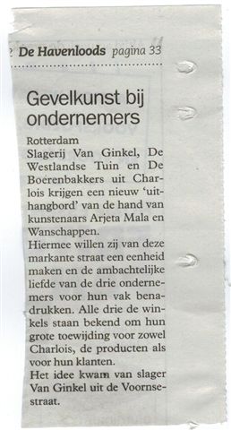 Read More...Eenmaal bezig met het uitknippen van krantenberichten stuitte Coen Veldhoen ook op het volgende bericht.Het stond in De Havenloods en ging om gevelkunst bij ondernemers. Arjeta Mala van Wandschappen maakte nieuwe uithangborden voor winkeliers in Charlois. Wandschappen maakte al raamdecoratie voor het Pendrecht Museum/Rollatorwerkplaats. Wie volgt?