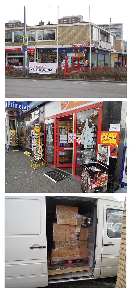 Read More...Laatste mogelijkheid om nog vuurwerk in te slaan. Er werd aan de achterkant nog aangevoerd.Bij het maken van de foto’s was het nog niet zo druk. Dat zou vast anders worden. Achter de winkel werd nieuwe voorraad aangevoerd.
