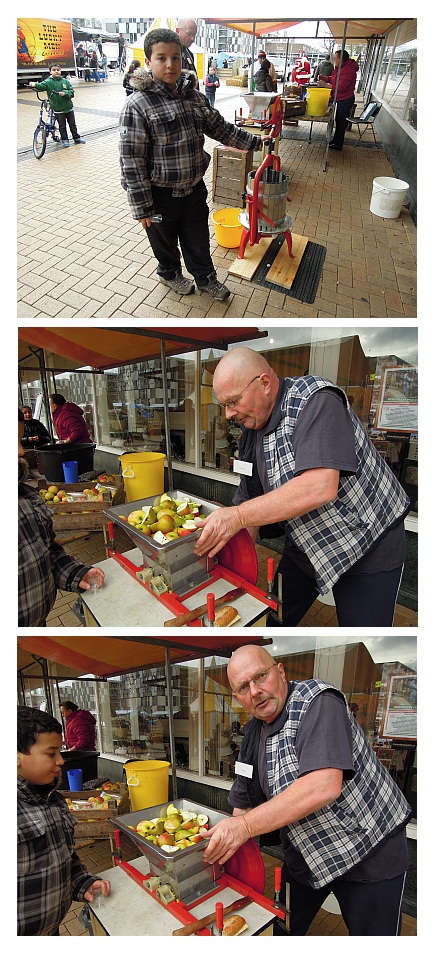Hij had zelf de appels ingeslagen tegen een schappelijke prijs. Die appels werden gewassen, gesneden en geperst en dan …. Heerlijke en eerlijke appelsap maakten Niek en Lenie Beeke voor wie het maar wilde proeven zaterdag. Hij heeft zelf al heel wat appelsap gemaakt en maakt er soms ook wijn van. Dat kan ook, maar