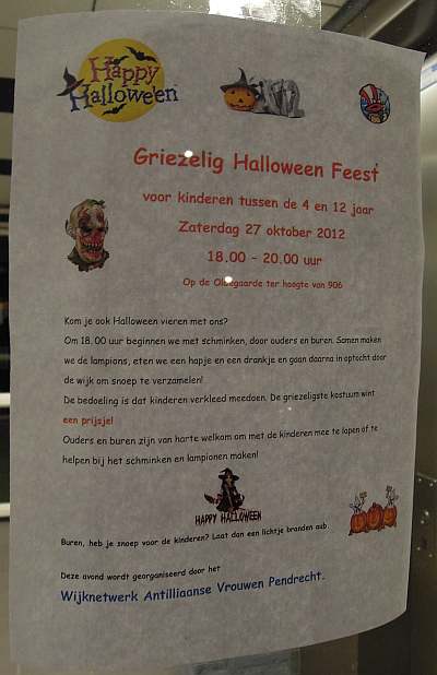 Zaterdagavond 27 oktober vieren de bewoners aan de Oldegaarde, Bruinissestraat en Ellemeethof Happy Halloween. Het feest is georganiseerd door het Wijknetwerk Antilliaanse Vrouwen Pendrecht.Happy Halloween? Het wordt weer griezelen in verschillende straten. Ter hoogte van Oldegaarde 906 zal de groep verzamelen. Het Wijknetwerk Antilliaanse Vrouwen Pendrecht heeft het feestje georganiseerd. Ouders en buren zijn van