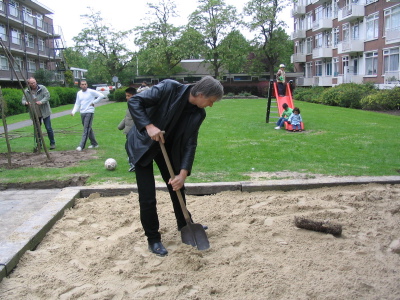 Met grijpers en een band met een vuilinszak erin wordt minitieus al het zwerfvuil weggehaald. Misschien weten ze ook een goede bestemming voor het paar sportschoenen dat aan de andere kant van de flat in de tuin ligt. Wat je bezighoudt is de vraag hoe komen er nou een paar goed ogende sportschoenen met de