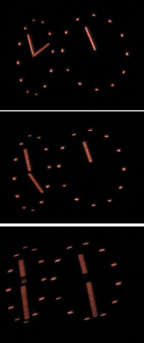 Wat bleek nu: de grote wijzer was niet verlicht. Even later was de kleine wijzer een paar seconden niet verlicht, waardoor er helemaal geen klok te zien was. Langzaam floepte de verlichting van de kleine wijzer weer aan. En wat gebeurde er rond 23.30 uur? Toen deed de grote wijzer het ineens weer! Overigens maar