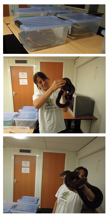 Read More...Slangen? Ja, en echte! Van Exotus Serpenti. Maar dat kon even niet buiten op het plein.Op Plein 1953 zou tijdens de Beachweek 2012 op donderdag iets spektaculairs gebeuren. Heuse slangen en die kon je dan vastpakken en over je armen laten kronkelen. Kijk maar dat gaat zo. Maar buiten op Plein 1953 was het donderdag