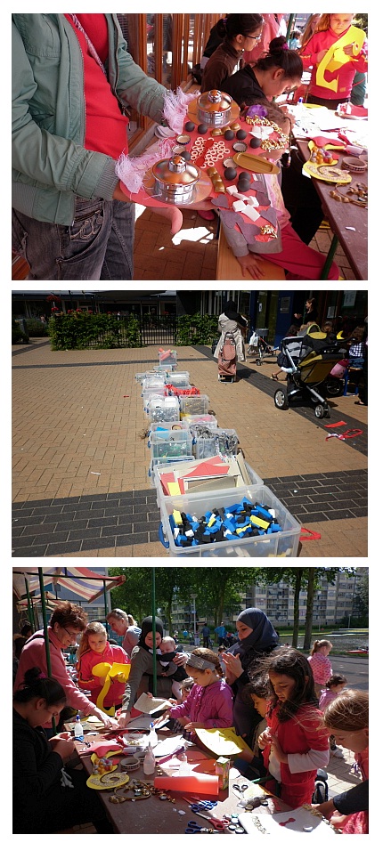 Read More...Op Plein 1853 stond een hele reeks plastic dozen met kosteloos materiaal. Met lijm of een nietmachientje kon je er van alles mee maken. Dat van de bovenste foto moest een vlinder voorstellen.